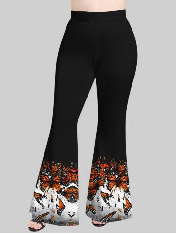 Plus Size Ink Painting Splatter Butterfly Print Pull On Flare Pants - Black - M