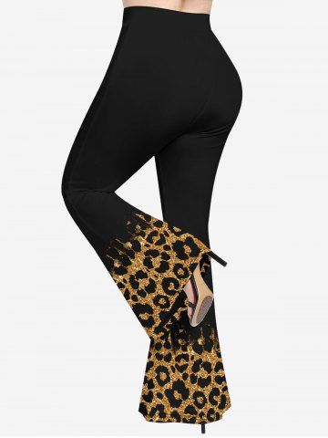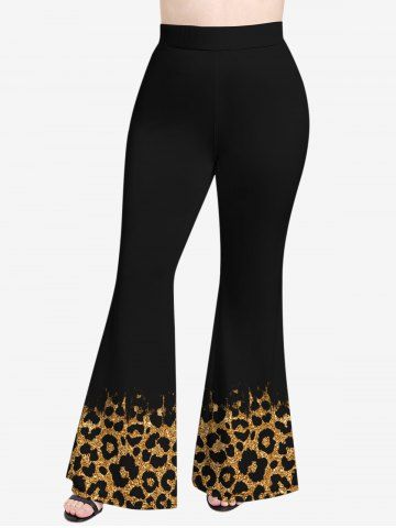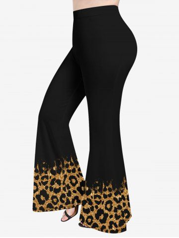 Plus Size Leopard Colorblock Print Flare Pants - Black - 4x