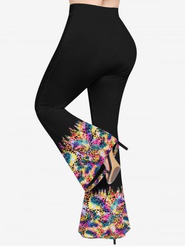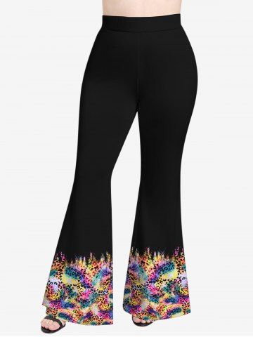 Plus Size Leopard Colorful Trippy Print Flare Pants - Black - L