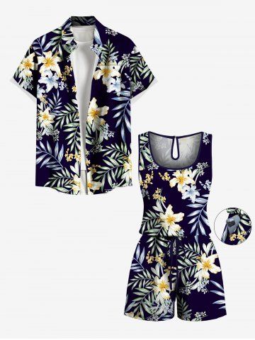 K*****y4Matching Hawaii Shirt Shorts and Romper Plus Size Beach Outfit Lily Flower Leaf Branch Print For CouplesColor: BLACKI was too chubby around the middle for this romper so I gave it to my niece. The smallest part of the waist was right above my mom pooch so the outfit just highlighted my gut.