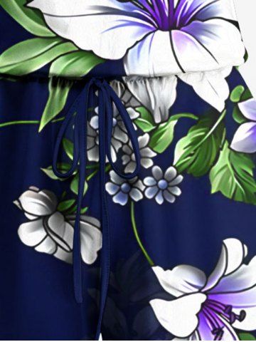 Graphic Pants > Plus Size Lily Flower Leaf Print Hawaii Drawstring Pocket Romper