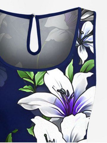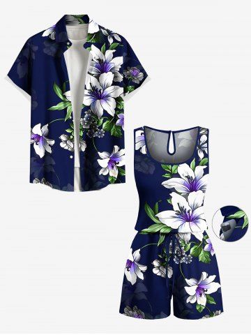 Graphic Pants > Plus Size Lily Flower Leaf Print Hawaii Drawstring Pocket Romper
