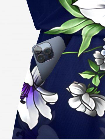 Graphic Pants > Plus Size Lily Flower Leaf Print Hawaii Drawstring Pocket Romper