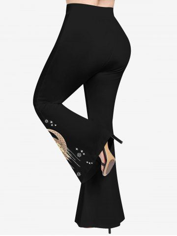 Renaissance Plus Size Moon Tassel Star Goddess Print Flare Pants - Black - 1x