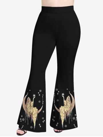 Renaissance Plus Size Moon Tassel Star Goddess Print Flare Pants - Black - 2x