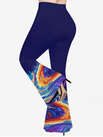 Plus Size Oil Painting Colorblock Sparkling Sequin Glitter 3D Print Flare Pants - Blue - 3x
