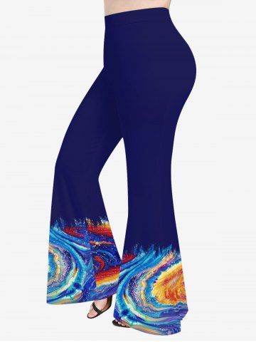 Plus Size Oil Painting Colorblock Sparkling Sequin Glitter 3D Print Flare Pants - Blue - 4x