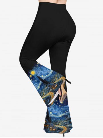 g*****e5Plus Size Oil Painting Swirls Galaxy Moon Mountains Print Flare PantsColor: BLACK Size: 5Xsooo cute! so comfy. they are a touch big, ordered based on my measurements. but not too big.