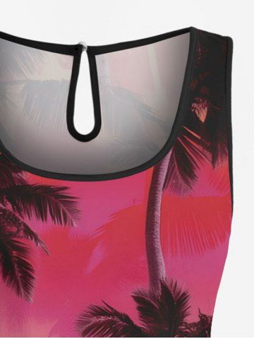 Plus Size Ombre Coconut Tree Print Hawaii Drawstring Pocket Romper - Red - S