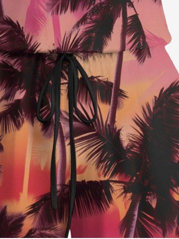 Graphic Pants > Plus Size Ombre Coconut Tree Print Hawaii Drawstring Pocket Romper