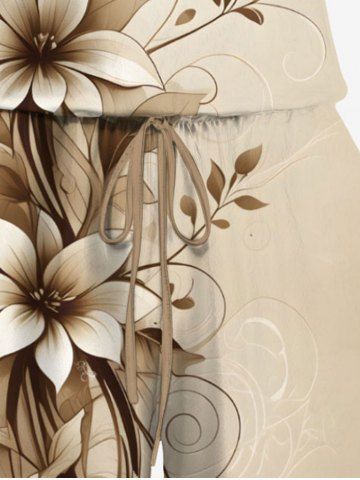 Graphic Pants > Plus Size Ombre Flower Branch Curve Print Hawaii Drawstring Pocket Romper