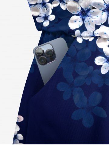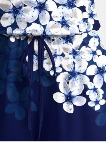 Plus Size Ombre Flower Petal Print Hawaii Drawstring Pocket Romper - Blue - 1x