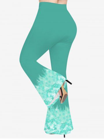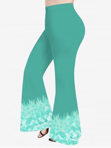 Plus Size Ombre Flower Print Flare Pants - Light Green - 4x