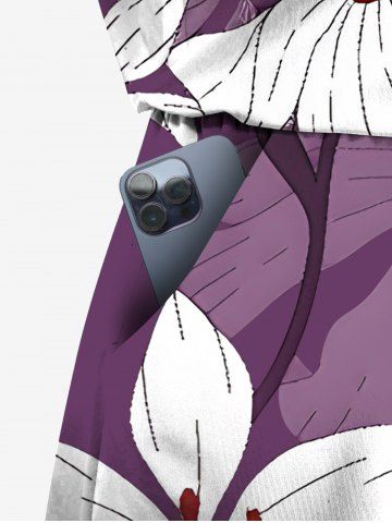 Plus Size Ombre Flower Print Hawaii Drawstring Pocket Romper - Purple - Xxs