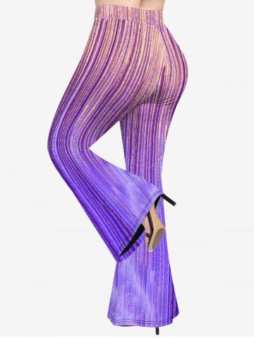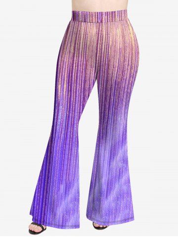 Plus Size Ombre Glitter Print Disco Flare Pants - Purple - 2x