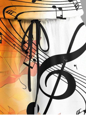 Graphic Pants > Plus Size Ombre Leaf Music Symbol Print Hawaii Drawstring Pocket Romper
