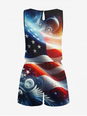 Graphic Pants > Plus Size Ombre Patriotic American Flag Wing Print Drawstring Pocket Romper
