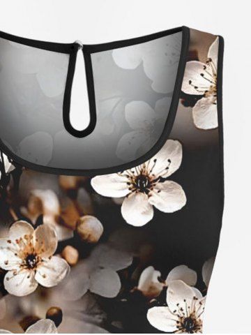 Plus Size Ombre Peach Blossom Flower Print Hawaii Drawstring Pocket Romper - Deep Coffee - 1x