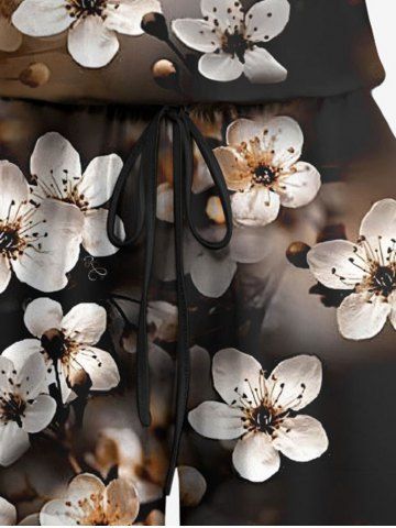 Plus Size Ombre Peach Blossom Flower Print Hawaii Drawstring Pocket Romper - Deep Coffee - 2x