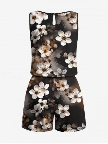 Graphic Pants > Plus Size Ombre Peach Blossom Flower Print Hawaii Drawstring Pocket Romper