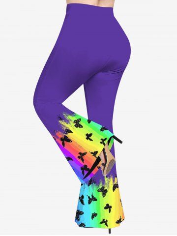 Plus Size Ombre Rainbow Color Butterfly Print Flare Pants - Multi-a - 5x