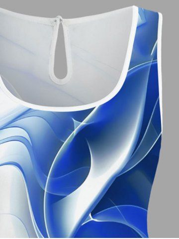 Plus Size Ombre Sheer Mesh 3D Print Cinched Romper - Sky Blue - 4x