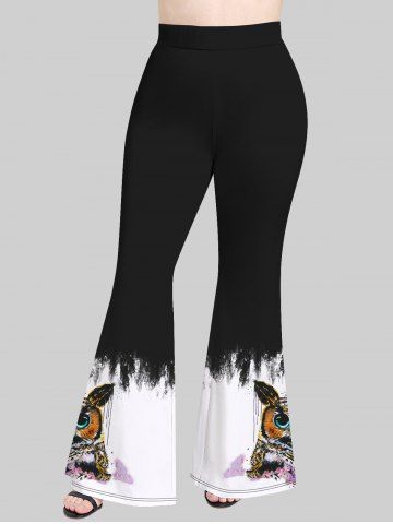 Plus Size Owl Colorblock Ink Painting Print Flare Pants - Black - 3x