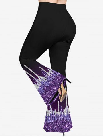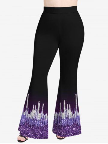 Plus Size Paint Drop Blobs Colorblock Sparkling Sequin Glitter 3D Print Flare Pants - Black - L
