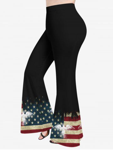 Plus Size Patriotic American Flag Eagle Print Flare Pants - Black - L