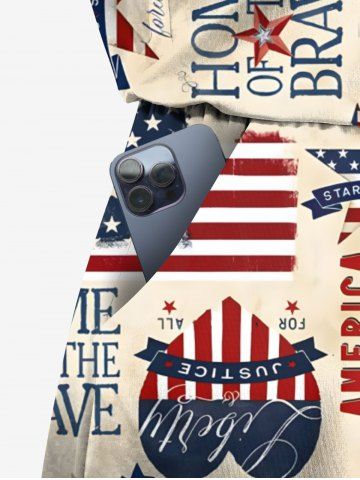 Plus Size Patriotic American Flag Heart Letters Print Hawaii Drawstring Pocket Romper - Light Coffee - M