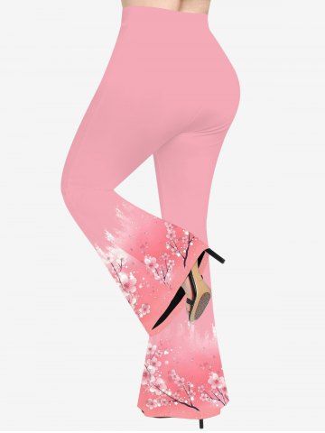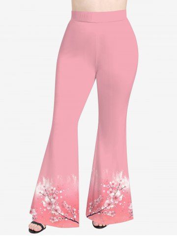 Plus Size Peach Blossom Glitter Stars Print Ombre Pull On Flare Pants - Light Pink - 4x