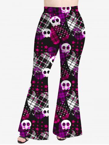 Plus Size Plaid Heart Cute Skull Stars Print Flare Pants - Purple - 4x