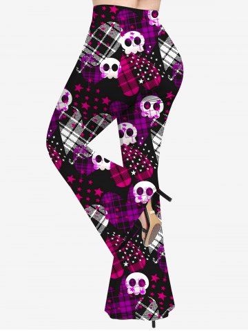 Plus Size Plaid Heart Cute Skull Stars Print Flare Pants - Purple - 5x