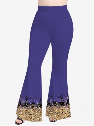 Plus Size Plaid Star Glitter Sparkling Sequin 3D Print Flare Pants - Blue - M