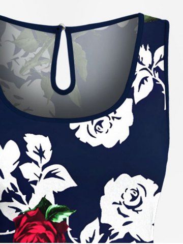 Plus Size Rose Flower Leaf Print Hawaii Drawstring Pocket Romper - Black - Xs