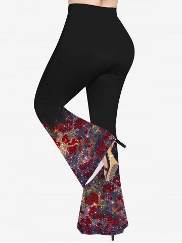 Graphic Pants > Plus Size Rose Leaf Glitter Galaxy Print Flare Pants