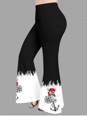 Plus Size Skull Pirate Anchor Chain Steering Wheel Print Hawaii Cruise Flare Pants - Black - M