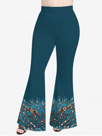 Plus Size Snake Skin Sparkling Sequin Glitter 3D Print Flare Pants - Green - 2x