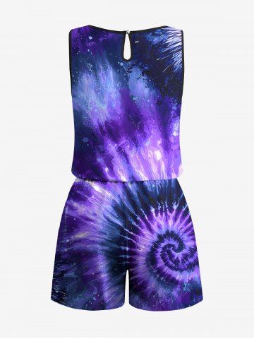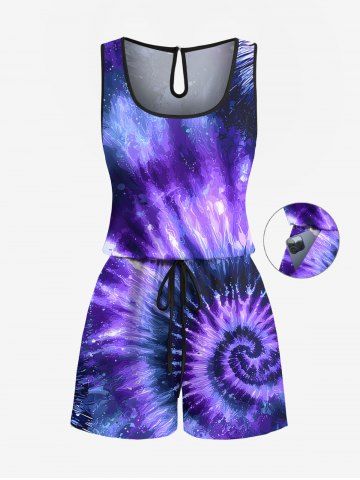 Plus Size Spiral Tie Dye Galaxy Print Hawaii Drawstring Pocket Romper - Purple - 4x