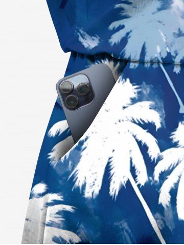 Plus Size Tie Dye Ombre Coconut Tree Print Hawaii Drawstring Pocket Jumpsuit - Blue - 5x