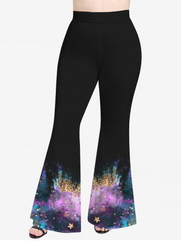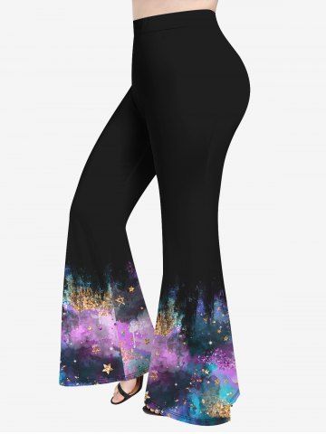 Graphic Pants > Plus Size Tie Dye Star Sparkling Sequin Print Flare Pants