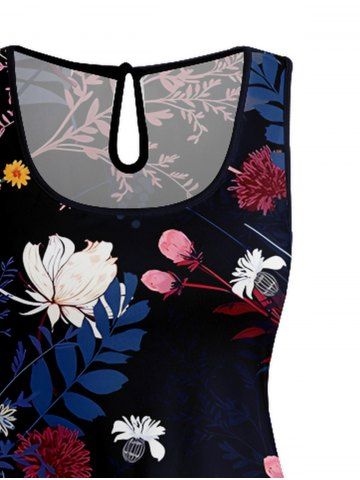 Graphic Pants > Plus Size Tropical Leaf Branch Flower Print Hawaii Drawstring Pocket Romper