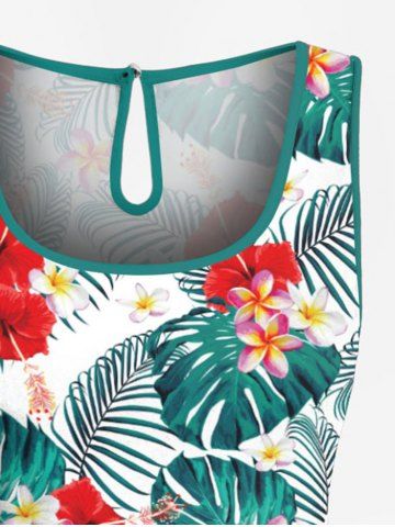 Plus Size Tropical Leaf Flower Print Cinched Hawaii Romper - Green - M
