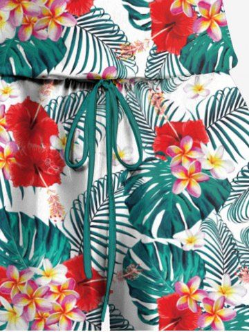 Plus Size Tropical Leaf Flower Print Cinched Hawaii Romper - Green - 3x