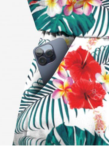 Graphic Pants > Plus Size Tropical Leaf Flower Print Cinched Hawaii Romper