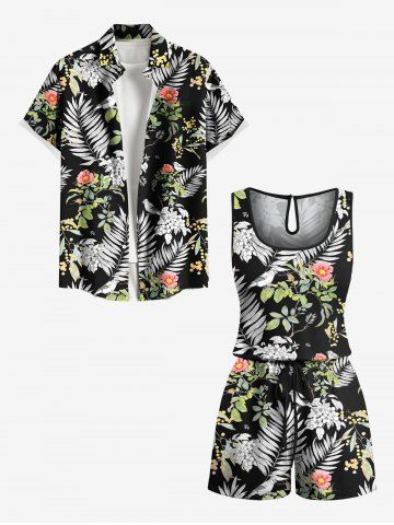 Graphic Pants > Plus Size Tropical Leaf Flower Print Hawaii Drawstring Pocket Romper