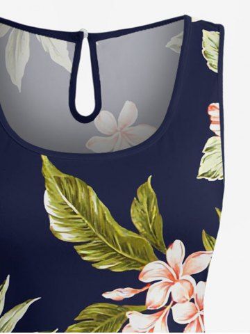 Plus Size Tropical Leaf Flower Print Hawaii Drawstring Pocket Romper - Deep Blue - 6x