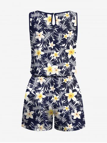 Graphic Pants > Plus Size Tropical Leaf Flowers Print Cinched Hawaii Romper