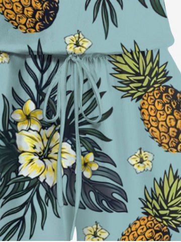 Graphic Pants > Plus Size Tropical Leaf Hibiscus Flower Pineapple Print Hawaii Drawstring Pocket Romper