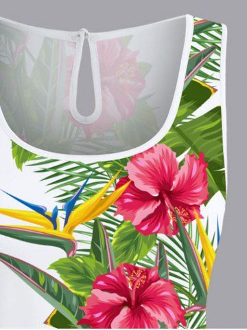 Plus Size Tropical Leaf Hibiscus Flower Print Cinched Hawaii Romper - White - 3x